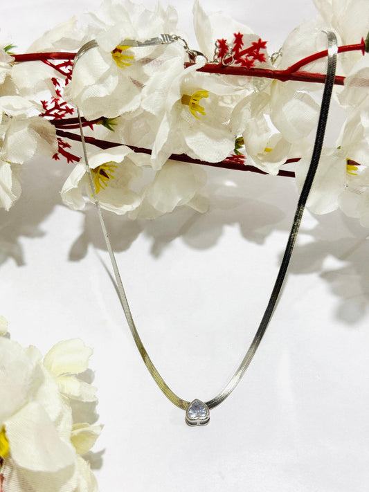 Stainless Steel Zircon Heart Pendant Necklace