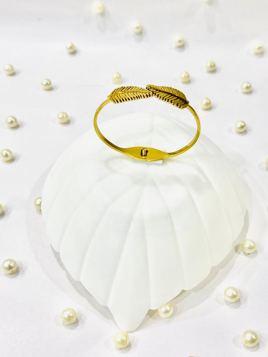 Stainless Steel Gold Plated Feather Bracelet