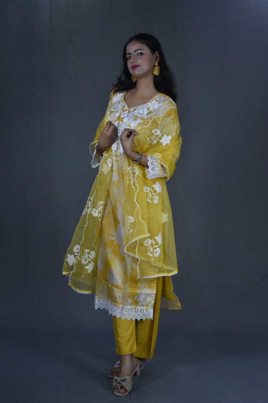 YELLOW SOFT ORGANZA DIGITAL PRINT SUIT SET