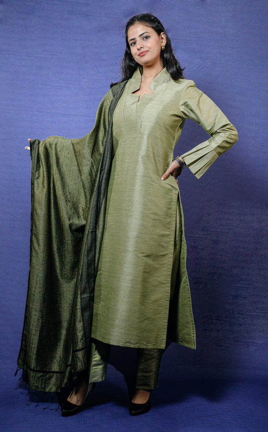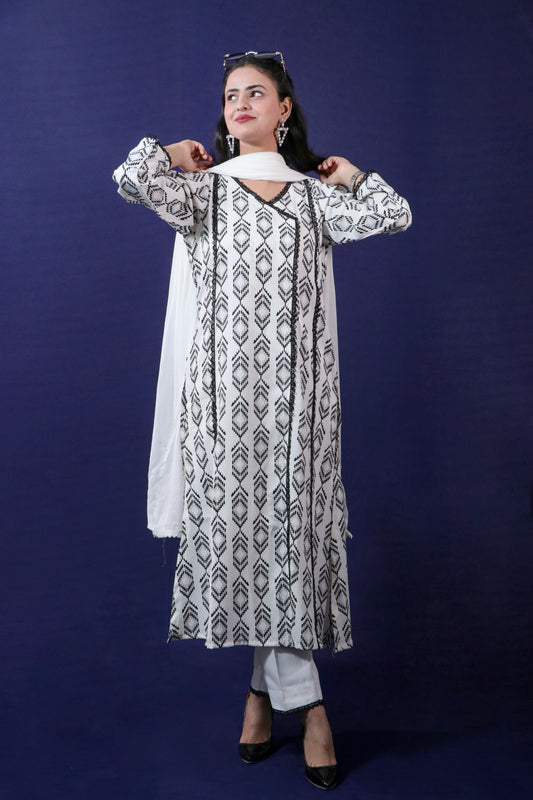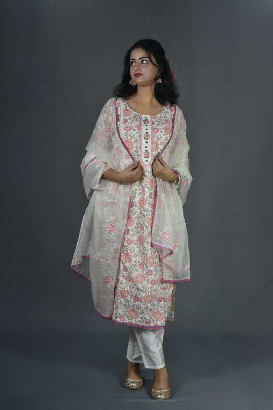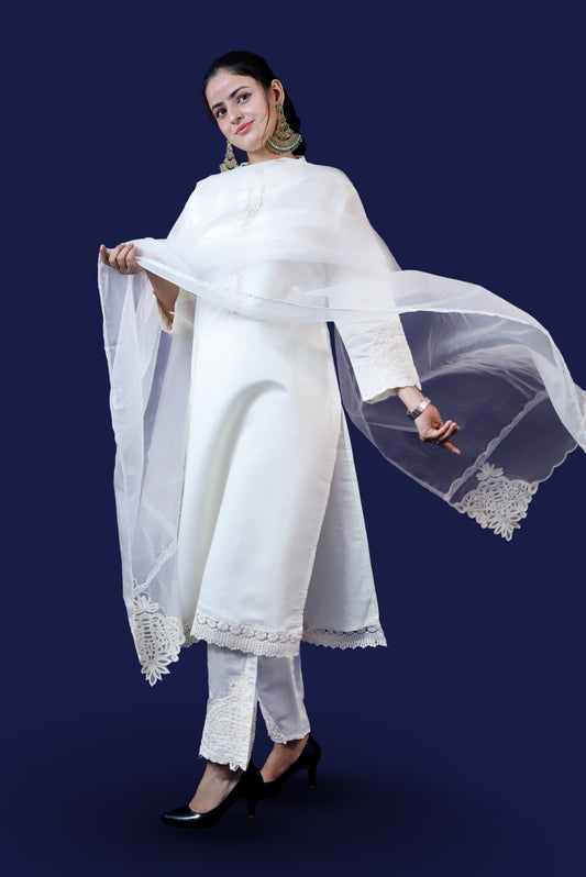 OFF WHITE SILK BLEND SUIT DUPATTA SET