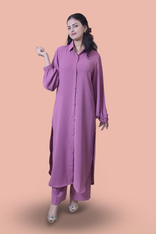 PRETTY PURPLE SILK BLEND V-NECK HAND WORK KURTA SET