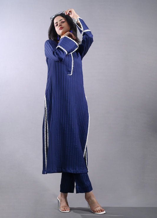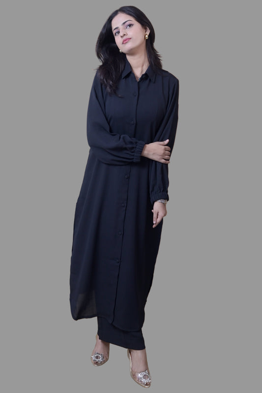 BLACK AND BEAUTIFUL VISCOSE RAYON A LINE KURTA AND PANT SET