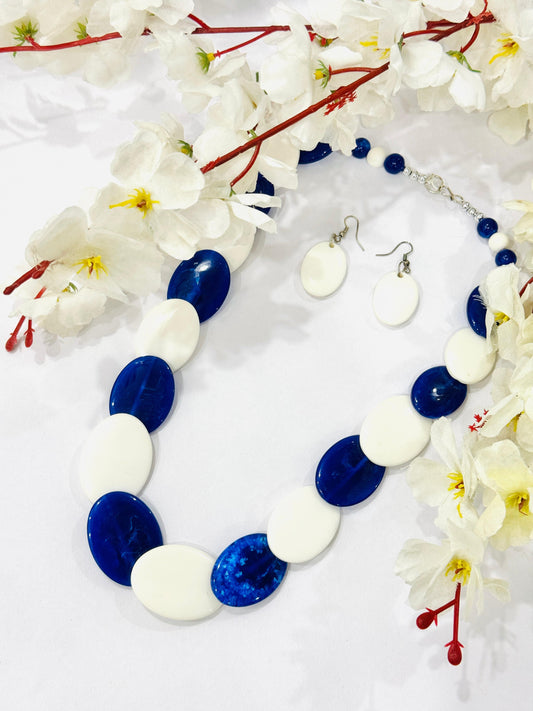 Royal Blue & White Overlapped Chemical Beads Necklace Set