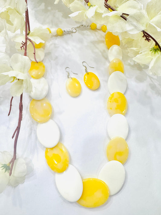 Yellow White Overlapped Chemical Beads Necklace