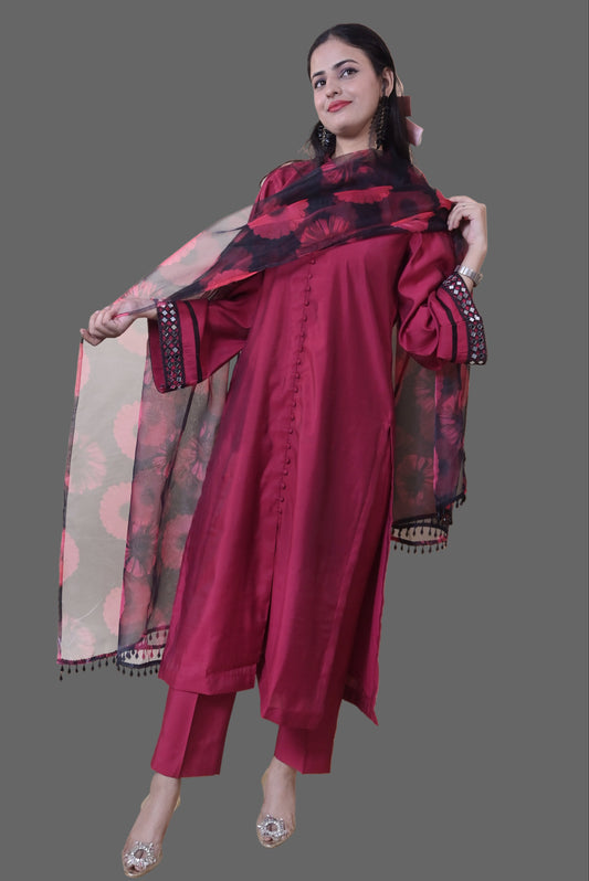 Dark Magenta Silk Kurta Set