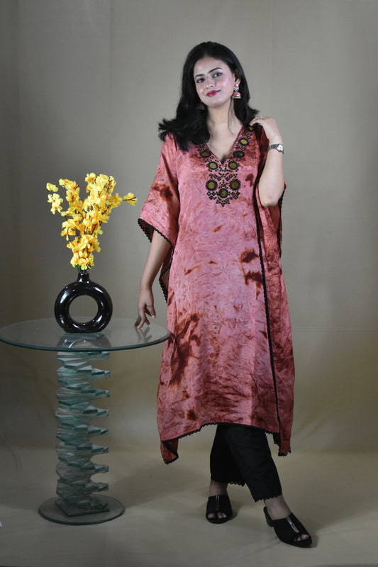 COPPER AND BLACK V-NECK KAFTAN WITH SEPARATE INNER AND TROUSER
