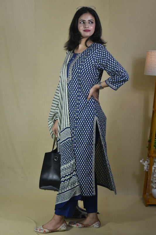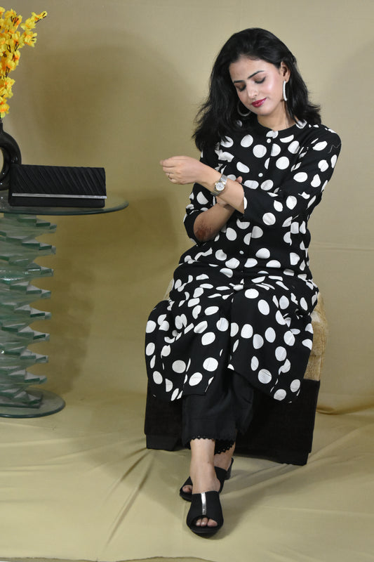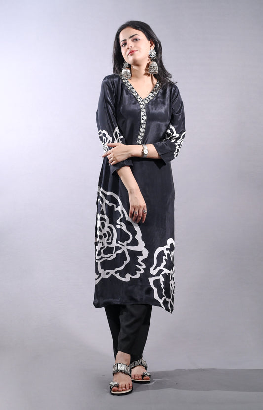 BLACK AND BEAUTIFUL VISCOSE RAYON A LINE KURTA AND PANT SET