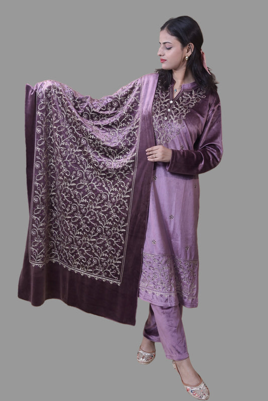 PRETTY PURPLE SILK BLEND V-NECK HAND WORK KURTA SET