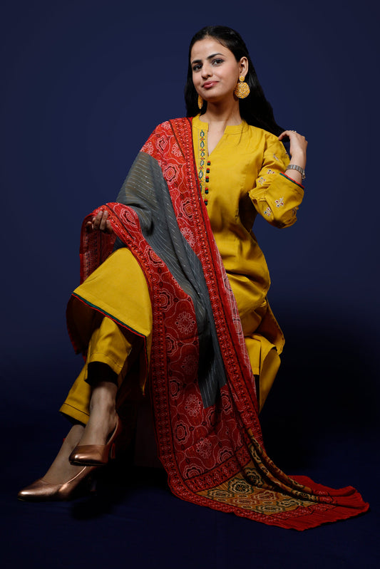 OFF WHITE SILK BLEND SUIT DUPATTA SET