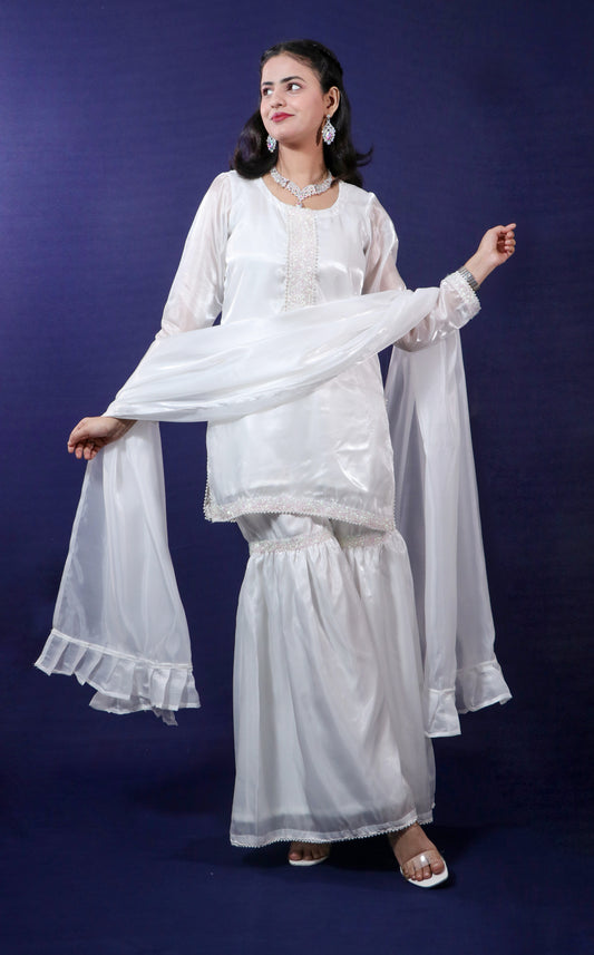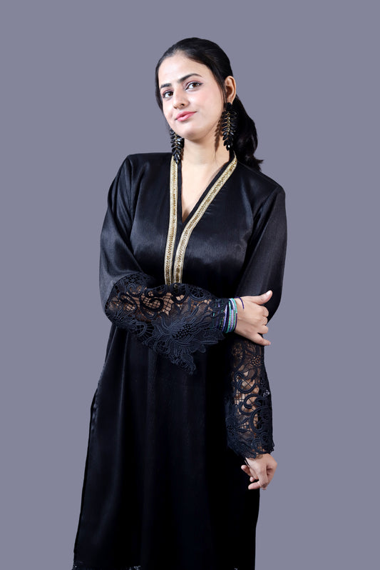 SILK BLEND V-NECK GREEN HAND WORK KURTA SET