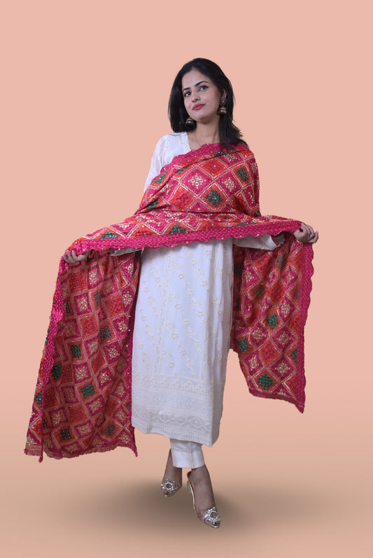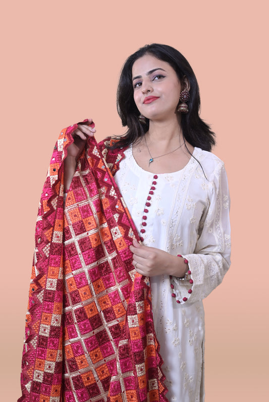 White Suit with Magenta Phulkari Dupatta