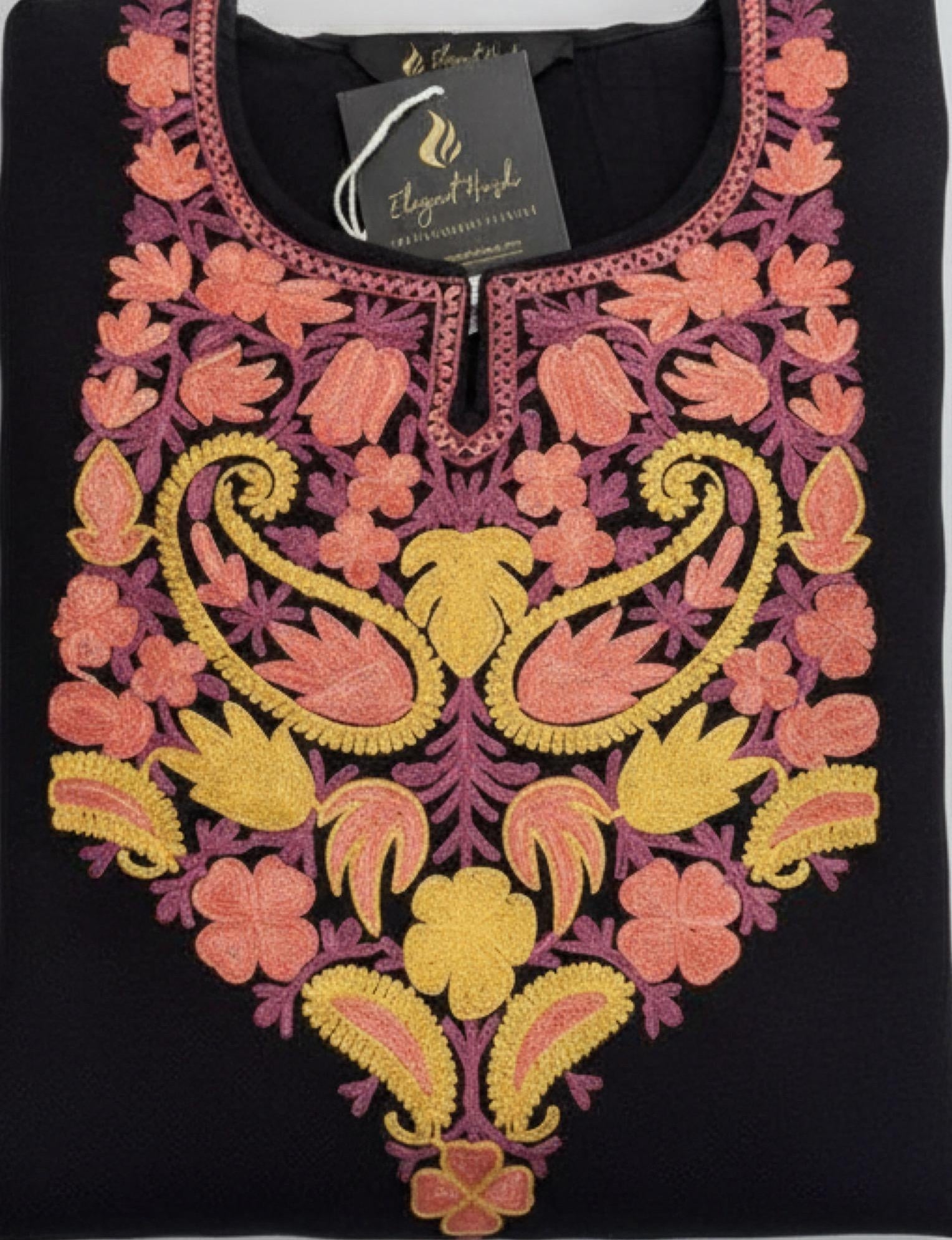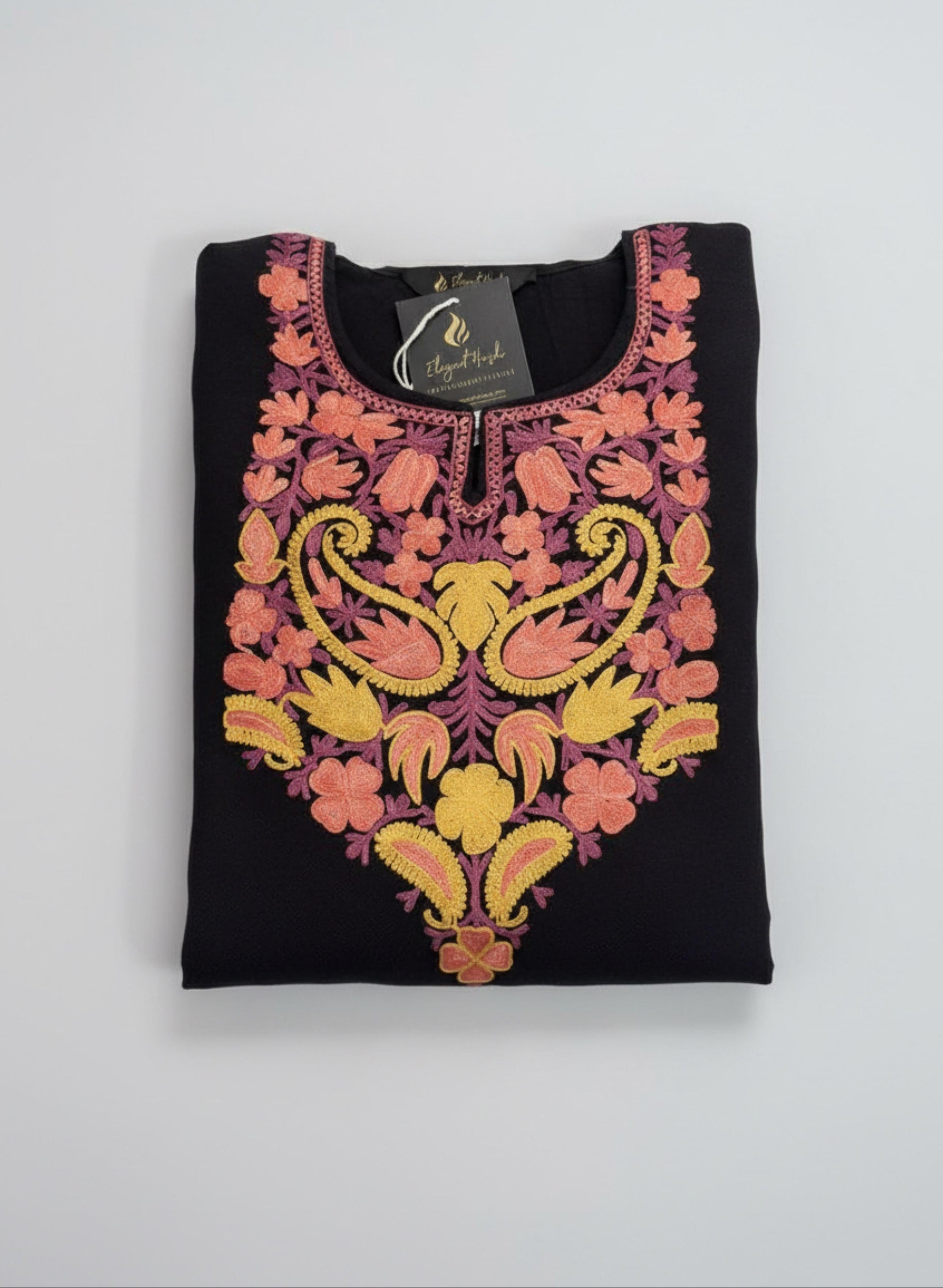 BLACK KASHMIRI PHERAN WITH PEACH/YELLOW EMBROIDERY